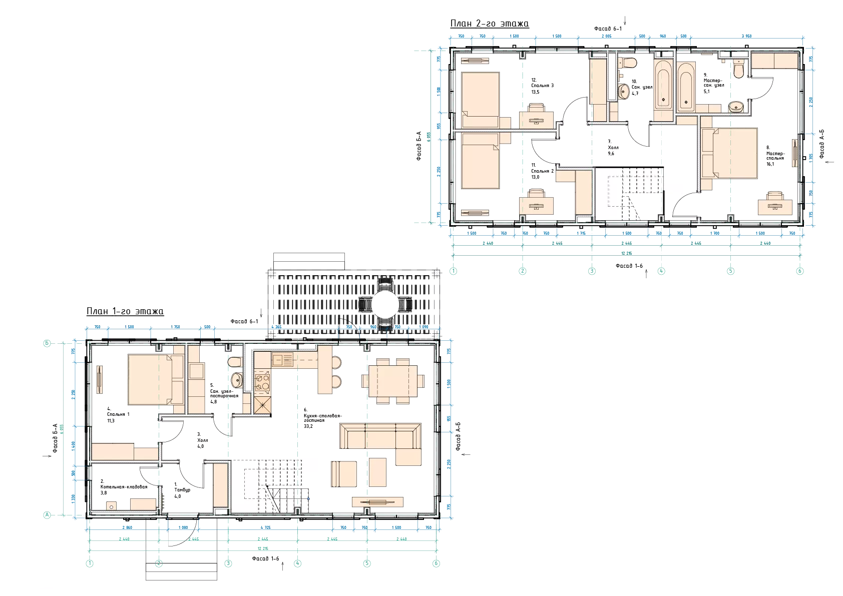 Модель "LIGHT 148" представляет двухэтажный дом современного дизайна общей площадью 148 квадратных метров. Этот вариант отлично подходит для семьи с детьми, ищущей уютное и функциональное жилище.