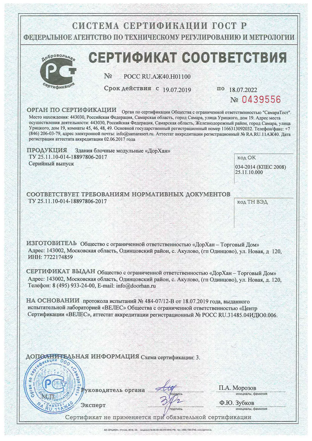 СЕРТИФИКАТЫ НА КАРКАСНЫЕ ЗДАНИЯ