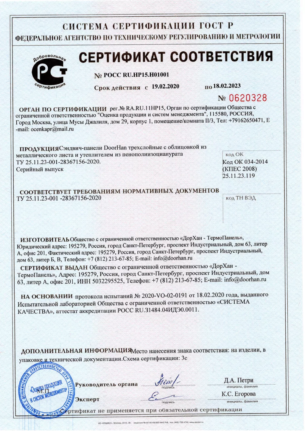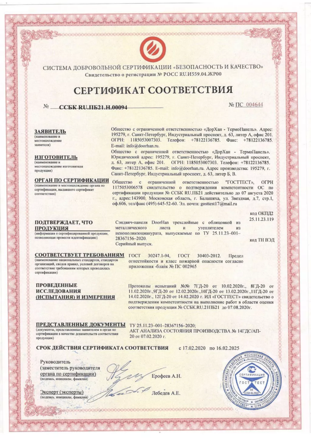 СЕРТИФИКАТЫ НА СЭНДВИЧ-ПАНЕЛИ